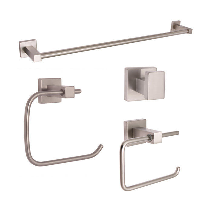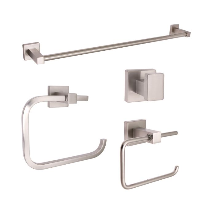 This bathroom package offers a modern addition to the bathroom with all the accessories included in one package. With all the hardware accessories made of high-quality metal construction, the Huntington Brass bathroom accessory package will make an minimalist statement to the room.